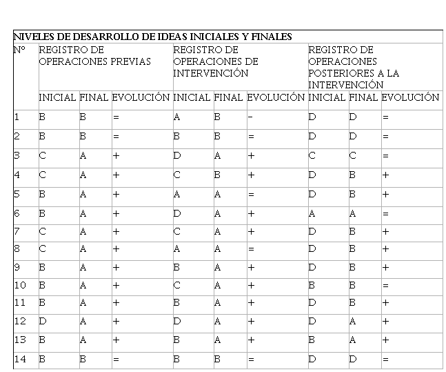 En los resultados de la evaluación final se vio reflejada una clara evolución con respecto a los modelos iniciales; estos resultados mostraban una visión más ordenada y completa del proceso global de intervención quedando a su vez plasmados e interrelacionados los contenidos conceptuales, procedimentales y actitudinales expuestos en el aula.