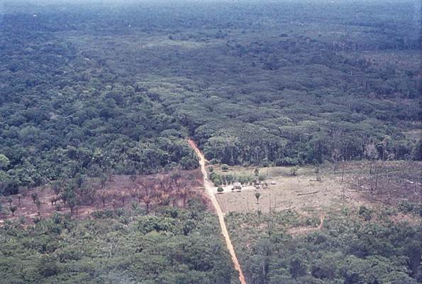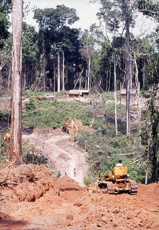 Na região do rio Arinos, foi fundada a localidade de Porto dos Gaúchos (posição 11⁰30’S). Muito antes de futuros empreendimentos de colonização nas matas tropicais, as terras dos Mayer próximas a um afluente do rio Juruena foram expandidas em até 220.000 hectares com meios financeiros privados, e sem qualquer apoio do Estado, formando a chamada Gleba Arinos (figura 1). Era o primeiro projeto de uma colonizadora privada autorizado pelo governo de Mato Grosso. A SPVEA aconselhou para que fosse implementado o cultivo da hévea na região. No entanto, merece destaque o fato de a compra de terras na Gleba Arinos na Amazônia ter ocorrido de maneira abrupta e desrespeitosa em relação ao cumprimento dos tratados legais de direitos dos povos indígenas originários à terra. Como nenhuma reserva indígena havia sido demarcada na região, as terras eram simplesmente consideradas como devolutas, ou como “terras vazias”. Em 1975, Gerd Kohlhepp retornou à região, deixando um registro fotográfico dos trabalhos de infraestrutura na região do rio Arinos. A figura 1 mostra o trabalho de maquinário para a abertura de estradas, bem como o desflorestamento para finalidades agropecuárias na região.
