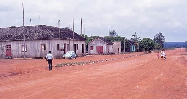 Em meados da década de 1970, o cenário otimista da colonização não se reproduzia no cotidiano da região da gleba. No ano de 1975, a cidade de Porto dos Gaúchos dava a impressão de que a crise havia atingido a região, gerando o cenário de “abandono”, caracterizado pela escassez de moradias, pela quase inexistência de atividades econômicas e pela precariedade de infraestrutura e de ação do poder público (figura 3). A via principal – que anteriormente havia sido uma pista de pouso – estava ocupada com bares, com a ausência quase completa de outros estabelecimentos comerciais.