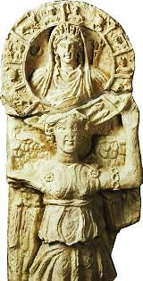 b) Um painel de arenito da Deusa Tyche, requerido pela Jordânia aos Estados Unidos (UNESCO, 1985; 1987);