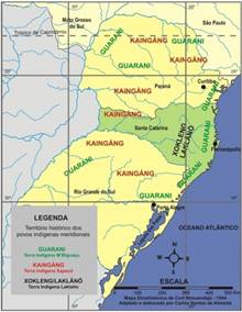 Segundo Silvio Coelho dos Santos (1997, p. 19), áreas ocupadas pela imigração europeia estimulada pelo governo brasileiro na região sul do país, eram territórios indígenas. A instalação de colônias, como a Nova Itália em 1836, iniciou uma disputa não só por território, mas também por recursos naturais. Ainda de acordo com esse autor, muitos indígenas, pela falta de como guarnecer suas necessidades alimentares, passaram a atacar as propriedades ocupadas pela colonização europeia. Além disso, indígenas passaram a atacar a imigração em “locais de trabalho e de trânsito”. Esse contato intercultural propiciado pela apropriação dos territórios indígenas gerou uma onda de violência exacerbada. O Estado, nesse contexto, em seu ideal civilizatório e de branqueamento da população, acabou vitimando muitos colonos e principalmente comunidades ancestrais. “O território tradicionalmente [...] indígena foi, portanto, objeto de um plano de ocupação sistemático e irreversível” (Santos, 1997, p. 20). Em meio às histórias, durante as entrevistas no projeto escolar, e na análise de fontes historiográficas, é verificável a relação conflituosa entre colonos e indígenas: “No entanto, mesmo diante de um processo violento, o índio não foi vítima passiva, tendo sua história reduzida às atrocidades dos brancos. Os índios, mesmo em situações adversas, posicionaram-se diante da nova conjuntura” (Wittmann, 2007, p. 22).