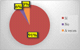 De 117 docentes, el 91% cree que el ambiente influye en el desarrollo de las personas con discapacidad, un 6% discrepa, con esta premisa y un 3% considera que a veces influye.