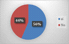 De 117 docentes, el 56% indica que la estructura de su institución educativa esta apta para los estudiantes con discapacidad y el 44% indica lo contrario.