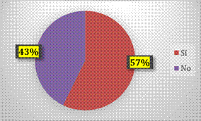 De 117 encuestados el 57% trabaja con estudiantes con discapacidad en contraste el 43% no trabaja con ellos.