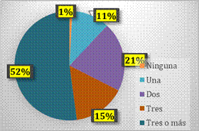 De los 117 docentes encuestados el 52% considera que deben tener más de 3 capacitaciones al año, un 21% indica que 2 capacitaciones, 15% 3 capacitaciones, 11% 1 capacitación y un 1% considera que ninguna capacitación al año.