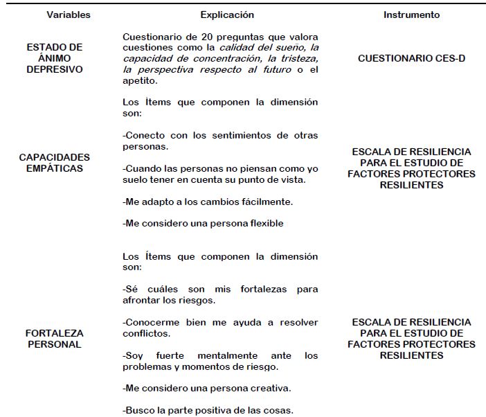 Para analizar las capacidades empáticas y la fortaleza personal en la población objeto de estudio, se utilizaron los factores que analizan las citadas dimensiones en la escala de resiliencia para el estudio de factores protectores resilientes (de la Paz y Mercado, 2018).