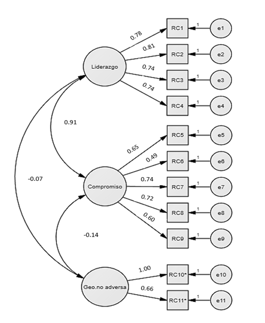 Figura. 2. Resultados del análisis factorial confirmatorio de la escala de resiliencia comunitaria.