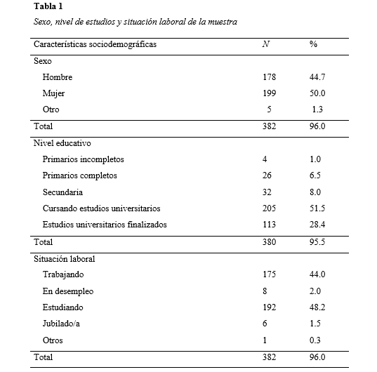 Participaron 387 personas residentes en la isla Bali. La edad media de la muestra es de 26 años (SD = 9.65). En la Tabla 1 se puede observar con mayor detalle las características sociodemográficas de los participantes.
