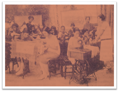 a cursos prácticos de economía doméstica, de cocina, de corte y confección, de zurcido y arreglo de ropa usada, y del dominio de la máquina de coser; esta asignatura representa un caudal de inagotables riquezas para hacer frente a las necesidades de la vida, y hará huir instintivamente a la mujer del fantasma espectral de perdición y relajamiento de costumbres, y se amparará en su máquina salvadora, cuyo ruido rítmico será himno de emancipación y libertad .Amanecer, 13-06-1926).