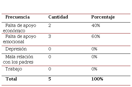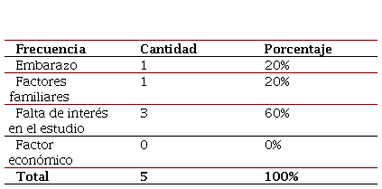 Tabla 2. Casos de compañeras que por el embarazo han dejado sus estudios