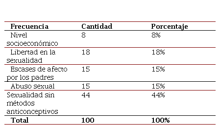 1. Indique los factores que inciden en el embarazo de las adolescentes.