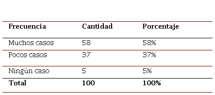 En relación con la pregunta, ¿conoce de casos de compañeras que por motivo de embarazo han dejado sus estudios? Reflejada en el gráfico 2 y 12 por cuanto se dirigió hacia los estudiantes y docentes, los estudiantes expresaron con el 58% conoce muchos casos, de la misma forma el 60% de los docentes afirmaron conocer muchos casos de estudiantes que han dejado los estudios por embarazo, hay que mencionar además que estos resultados demuestran que los alumnos son conscientes de que un embarazo en la adolescencia puede ser una principal causa para que se dé un fracaso en el rendimiento académico o la deserción escolar.