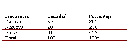 Análisis: En relación con la pregunta tres, sobre si tiene consecuencias un embarazo en la adolescencia, un 20% respondieron afirmativamente, y un 41% ambas opciones, lo que demuestra que existe un alto porcentaje de estudiantes que indican que el embarazo en la etapa de la adolescencia tiene consecuencias negativas sobre las positivas.