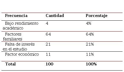 7. ¿Cuáles serían las razones principales para la deserción escolar en una estudiante?