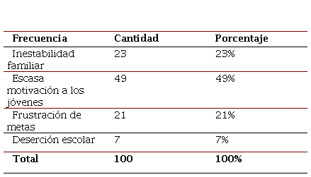 Hay que señalar que, un ambiente familiar desintegrado y conflictivo lleva a la adolescente a tomar la decisión de iniciar precozmente la actividad sexual, además de buscar compañía grata, y ve la posibilidad de un embarazo como alternativa de escape y construcción de una nueva vida, que, por lo general, no llega y sí complica el futuro de la adolescente (Merino, 2010).