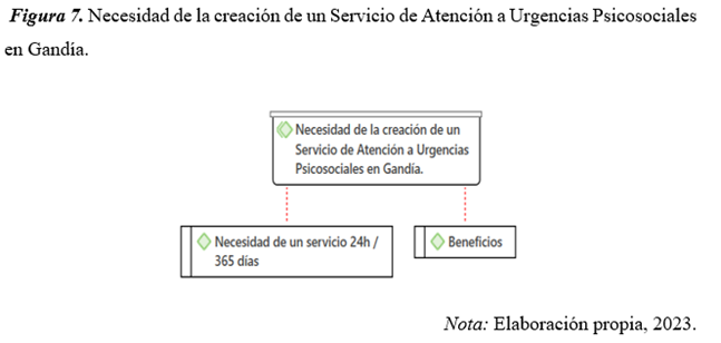 La Figura 7 muestra la categoría “Necesidad de la creación de un Servicio de Atención a Urgencias Psicosociales en Gandía” y sus atributos