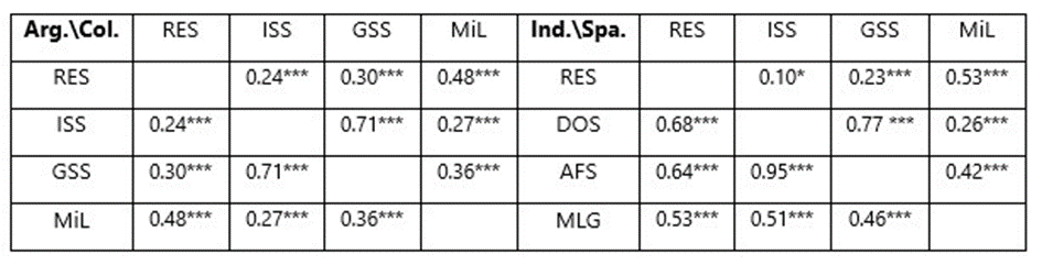 Once all the measurement models were estimated, participants' factor scores were estimated from each of the measurement models for every factor of interest: Resilience, Meaning in Life, Instrumental, and General Social Support. Table 5 shows the factors correlation matrix in the four countries.