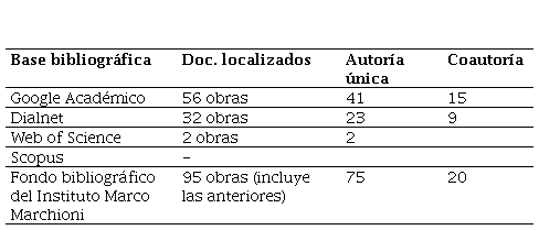 b) Identificación de los documentos: Acceso a buscadores académicos y bases de datos: Google Académico, Dialnet, Web of Science, Scopus y el repositorio bibliográfico del Instituto Marco Marchioni. Rechazando previamente “literatura gris” (Tabla 1).