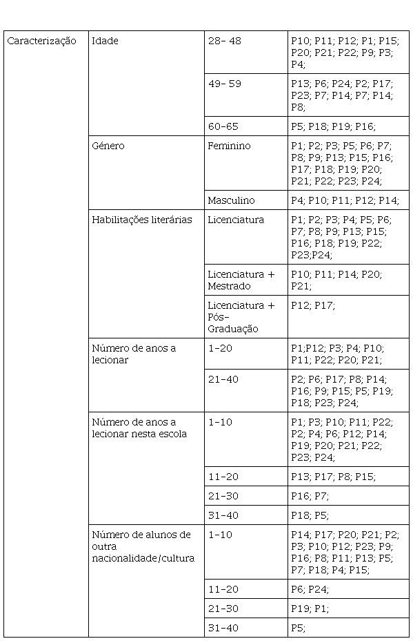 Um dos professores (P 11) afirma que “fico mais atento, para verificar se há algum comentário racista por parte de algum discente”; o P15 contou que “quando planifico a aula tenho cuidado em procurar atividades que promovam o êxito e ao mesmo tempo a partilha de saberes e saberes fazeres”. Contrariamente aos depoimentos anteriores, o P19 afirma que “não preciso, o modelo de ensino que uso já permite dar apoio, apenas seria necessário reduzir a quantidade de alunos por turma, pois as turmas que têm alunos estrangeiros”.
