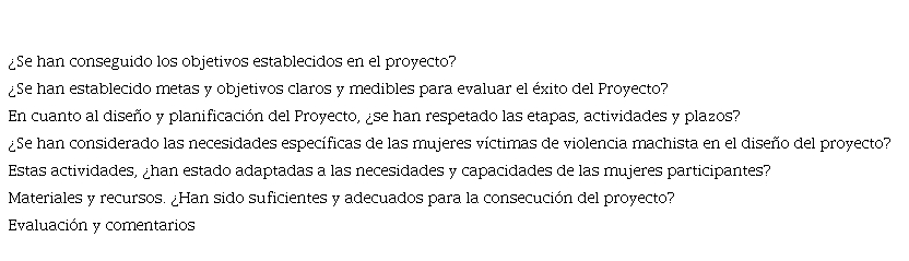 Se trata de medir cómo el proyecto puede contribuir a mejorar la situación sociolaboral de las mujeres víctimas de violencia de género, además de promover su empoderamiento y mayor autonomía.