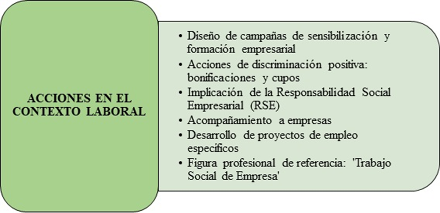 Para fomentar la contratación de personas trans, la intervención social debe abordar tanto las actitudes empresariales como las estructuras laborales que perpetúan la exclusión y la discriminación. El conjunto de acciones se recoge en la Figura 2.