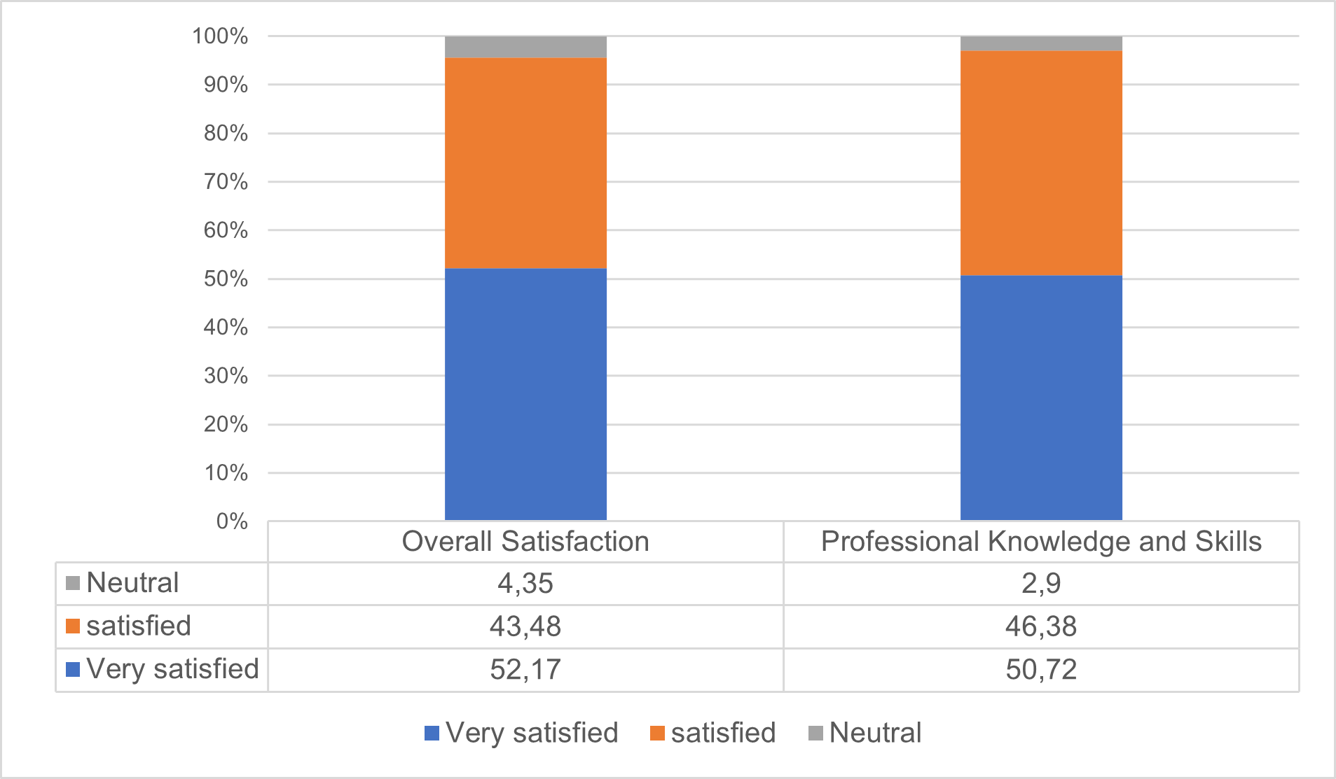 BFSU students are widely recognized for their exceptional language proficiency and intercultural competence both domestically and internationally. According to the 2022 Employment Quality Report, BFSU graduates typically achieve B2-C1 levels in language proficiency, with over 54% pursuing further education. Among these, 24% of undergraduate graduates enroll in degree programs abroad. Notably, 60 BFSU alumni have joined the Ministry of Foreign Affairs, reinforcing BFSU’s reputation as the "Cradle of Chinese Diplomats." Additionally, BFSU graduates are well-represented in international organizations, multinational corporations, and foreign embassies in China, earning high satisfaction ratings from employers (Figure 1).