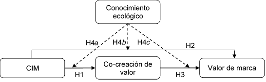 H4a-H4c: las relaciones entre la CIM, la cocreación de valor y el valor de marca varían según el nivel (alto o bajo) del conocimiento ecológico de los huéspedes.