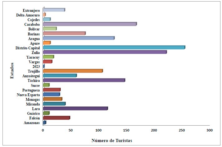 Resumo: Objetivo. Analisar o perfil do turismo receptivo em Mérida durante a Semana Santa nos últimos anos; temporada que concentra o maior número de manifestações e eventos culturais e religiosos do Estado. Metodologia. A partir de uma análise de correspondência múltipla multivariada, quatro perfis foram encontrados com base em variáveis significativamente diferenciadas. Resultados. Na Venezuela, incluindo o Estado de Mérida, é urgente promover os múltiplos tipos de turismo especializado a partir de seu patrimônio histórico-cultural e religioso; por este motivo, recomenda- se o fortalecimento e combinação de atrativos turísticos. Conclusões. Conclui-se que a demanda turística no Estado de Mérida durante a temporada em estudo é moderadamente homogênea, onde um número considerável de turistas apresentou motivos de visita diferentes ao aspecto religioso.