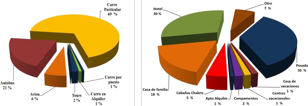 El análisis descritivo sobre las características grupales (lugar de procedencia, tipo de alojamiento y medio de transporte) evidenció un patrón similar en cuanto al lugar de procedencia hacia las regiones centrales del país (Distrito Capital, Estados Aragua y Carabobo) (34 %), Occidental (Estados Lara, Zulia, Táchira) (30 %) (figura 4). El medio de transporte más utilizado fue el carro particular y el autobus con más del 80 %; además se halló similitud en la alternativa de alojamiento entre la posada, el hotel y la casa de familia al representar en promedio el 80 % (figura 5).