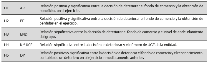 En resumen, las hipótesis a contrastar se detallan en la tabla 1.