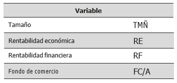 Estas variables serán el tamaño (Sevin and Schoroeder, 2005; Verriest and Gaeremynck, 2009), el porcentaje que representa el fondo de comercio sobre el total del activo (Ramanna and Watts, 2012; Glaum, Landsman and Wyrva, 2015), así como la rentabilidad de la empresa.