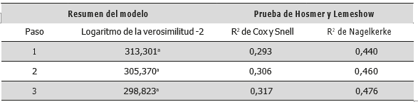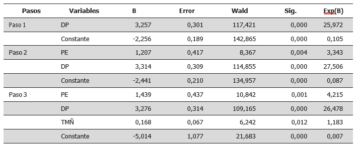 Tabla 6. Resultados de la regresión logística por pasos
