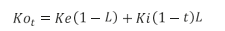 En donde Ke es el costo del capital propio[2]; es el nivel de endeudamiento que resulta de dividir la deuda con costo explícito en el ANO Ki es la tasa de interés; no obstante, como el gasto por interés es deducible de la base gravable de la compañía, el costo de la deuda después de impuestos queda expresado como Ki (1 t): t es la tasa de impuestos de la empresa.