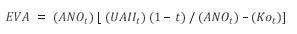 En donde (UAIIt) (1 – t) / ANOt es el rendimiento después de impuestos del ANO. A la diferencia entre el rendimiento después de impuestos del ANO y el costo y el K0t se le denomina porcentaje utilidad o pérdida residual.