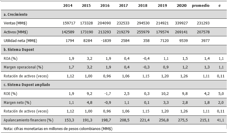 A continuación, se realiza un análisis del crecimiento, eficiencia, eficacia, efectividad y del valor económico agregado del pequeño supermercado —PS— y mediano supermercado —MS— entre el período 2014-2020.