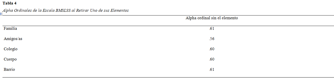 Alpha Ordinales de la Escala BMSLSS al Retirar Uno de sus Elementos