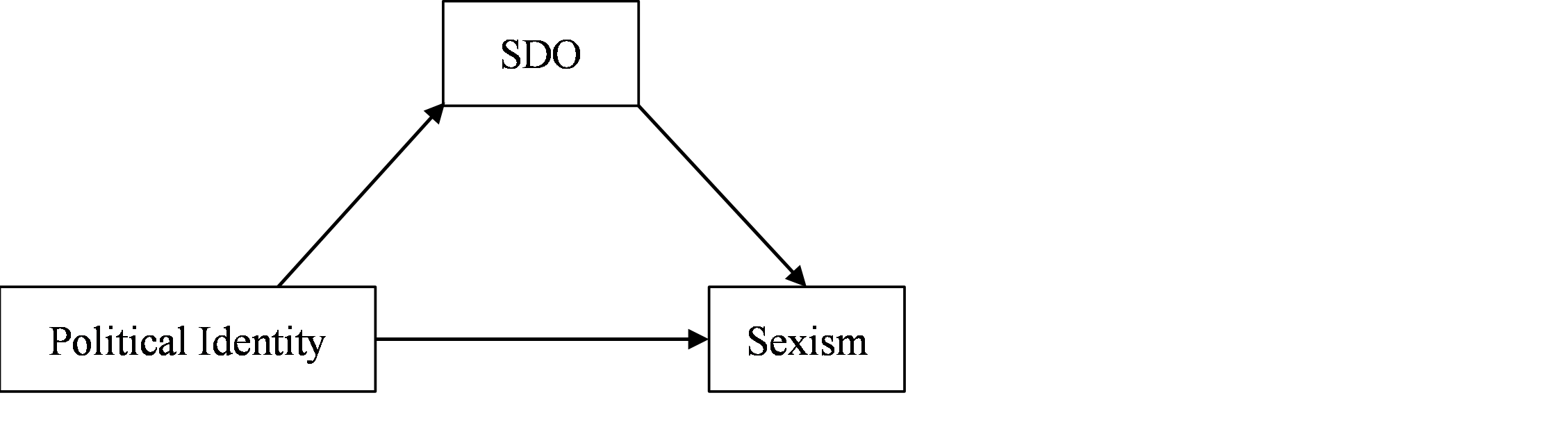 The present study investigated the relations between political identity, social dominance orientation (SDO), and ambivalent sexism. Additionally, it sought to evaluate SDO as a mediator between political identity and dimensions of sexism.