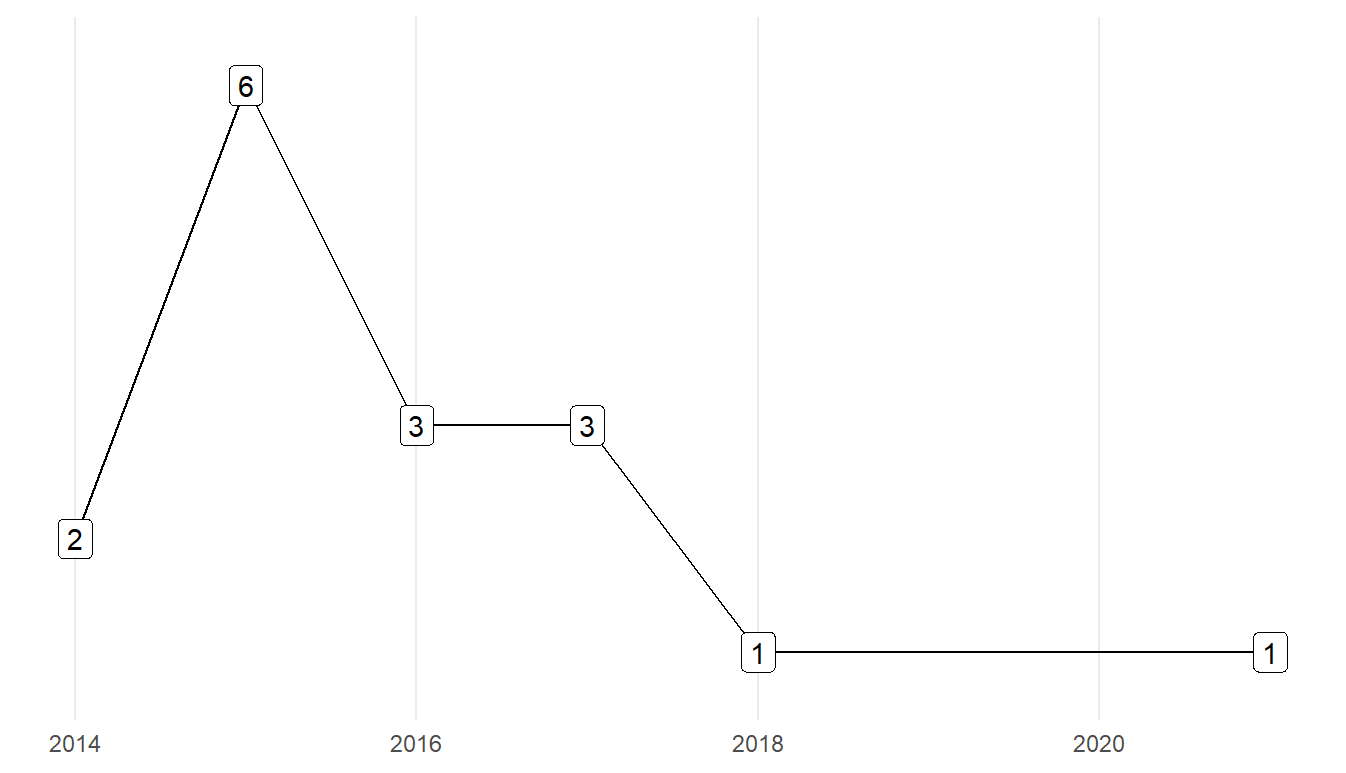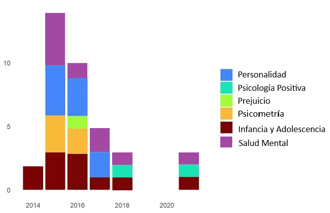 Se destaca una mayor producción en los primeros años de la revista (2015-2017), con una disminución desde el 2018 a la actualidad en lo referido a la cantidad de artículos publicados sobre autoestima.