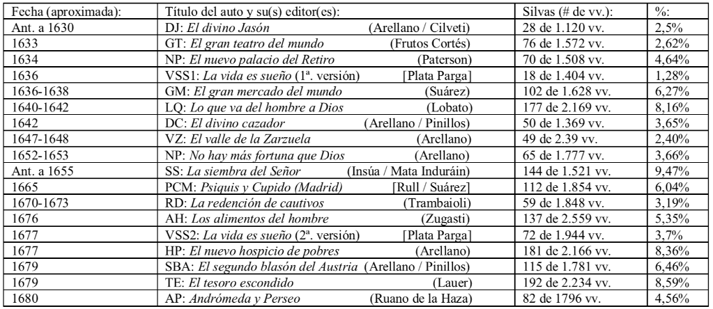 Para las intenciones de este trabajo, analizaré tres modelos de las susodichas modalidades de la silva en varios autos calderonianos.