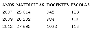 Acreditamos que esta diminuição do número de escolas, a despeito do aumento do número de matrículas (como mostra a tabela acima), é um fator fundamental para problematizarmos a qualidade da oferta de tempo-espaço escolar para a educação (em tempo) integral no município.