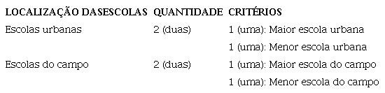Nesta seção pretendemos apresentar as inúmeras estratégias operacionalizadas pelos gestores visando à ampliação do tempo-espaço escolar, como orienta o PME. As escolas investigadas estão situadas em áreas do campo e da cidade e compõem parte da rede municipal de Caruaru em Pernambuco. Escolhemos quatro escolas da rede municipal através dos seguintes critérios: