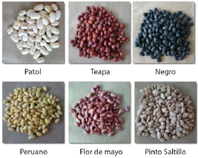 Se utilizaron seis variedades de frijol en grano, representativos de Chihuahua (frijol Pinto Saltillo), Durango (frijol Flor de Mayo y frijol Patol), Morelos (Frijol Negro), Jalisco (Peruano) y Tabasco (frijol Teapa), en base a la preferencia de consumo (Figura 1). Las muestras se trasladaron al laboratorio en donde se procedió a realizar la extracción de los compuestos antioxidantes.