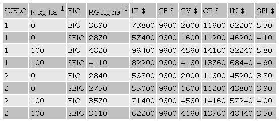 Para el análisis económico se estimaron los costos arrojados por cada tratamiento utilizando las siguientes ecuaciones (Bueno et al., 2005):
