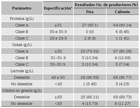 En cuanto a la calidad fisicoquímica, los productores lácteos buscan leche con altos contenidos de sólidos totales, en donde destaque el porcentaje de proteína total (dentro de ella la caseína) y la grasa butírica, ya que son indicadores que infieren alto valor industrial (Villegas de Gante et al., 2016); existe una correlación positiva entre los porcentajes de grasa y proteína de la leche con el rendimiento de queso y otros productos lácteos (Mejía-López et al., 2017).