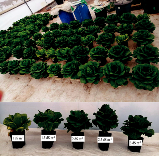 En esta investigación, los resultados obtenidos demostraron que el control de la CE de las SNs es un factor determinante en la calidad de la lechuga, aunque dichos resultados dependieron probablemente de las características genéticas de la lechuga romana utilizada (Paris Island Cos), la cual, es una variedad con buena tolerancia a la salinidad, calor y a diferentes enfermedades (Xu y Mou, 2015). Esta buena tolerancia a la salinidad de la variedad de lechuga utilizada causó que la mayor acumulación de biomasa y rendimiento del cultivo fueran obtenidos con la SN de la CE de 2.5 dS m-1.