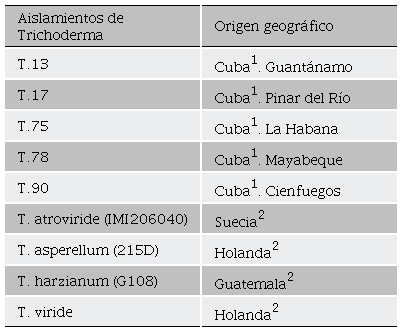 Los aislamientos y cepas de Trichoderma objeto de estudio tienen diferentes orígenes (Tabla 1).