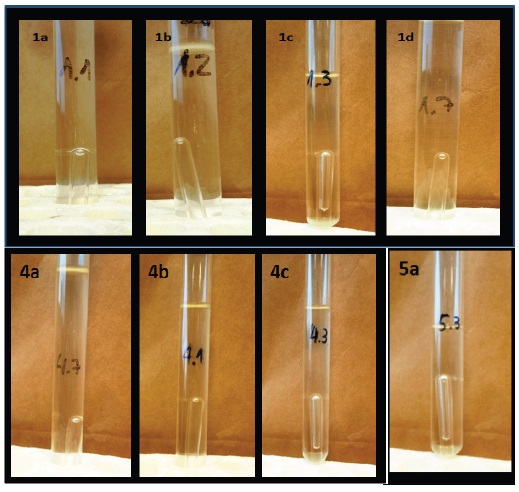 A qualitative test was carried out to determine if the assimilation of the tested carbohydrates was done through fermentative processes (CO2 production). The results indicated that Cryptococcus sp. (AIRB-ML4.2) ferment glucose, galactose, xylose, and mannose. Rhodotorula sp. (AIRB-ML2.1) was able to ferment glucose, xylose, and mannose, and Leucosporidium sp. (AIRB-ML5.1) was only able to ferment xylose (Figure 3).