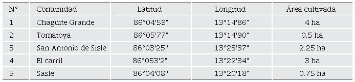 El estudio se llevó a cabo en la cabecera departamental de Jinotega, específicamente en el municipio de Jinotega ubicado en el norte de Nicaragua (Latitud: 85°46’05’’, Longitud: 13°80’24’’), a 142 km de la capital Managua, se ubica a una altitud de 1004 msnm, su superficie es de 880.3 km, (Instituto Nicaragüense de Estadísticas y Censos (INIDE, 2011). Las fincas seleccionadas se encuentran en la zona costera del lago de Apanas, pertenecientes al municipio de Jinotega, en el departamento de Jinotega, presenta tres zonas climáticas definidas: zona seca: se caracteriza por presentar rangos de 22 a 27 °C, las precipitaciones entre 600 y 1000 mm anuales y altitud de 630 msnm, zona intermedia: las precipitaciones oscilan entre 800 y 1200 mm anual, con rangos de 21 a 24°C y elevaciones de 900 a 1600 msnm, zona húmeda: ubicada a la misma altitud que la zona intermedia con precipitaciones mayores que oscilan entre 800 y 2000 mm anual; rangos de 19 a 22°C, respectivamente.