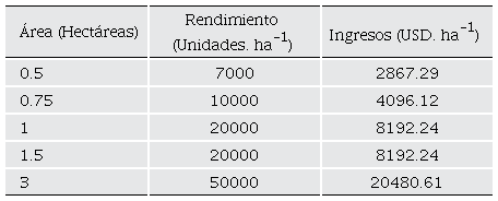Es evidente que a mayor cantidad de áreas cultivadas mayor suele ser la producción y sus ingresos económicos (Tabla 2). Implementar nuevas estrategias de producción ha permitido una mejora significante por parte de los productores de repollo, tanto en sus rendimientos como en la apertura de mercados, siendo las BPA el complemento necesario para la mejoría en su economía.