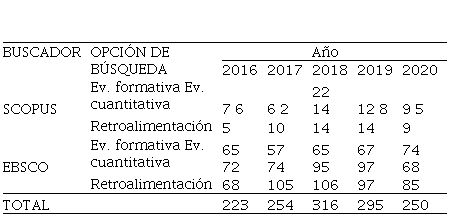 En cuanto a los artículos utilizados por palabra clave, la mayoría de ellos estuvieron referidos a la Evaluación Formativa tal como se observa en la Tabla 3.